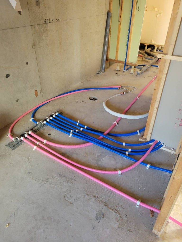 K’s Homeの給排水設備工事は、住宅の「快適な暮らし」を支える根幹部分を担っています。住宅やリフォーム現場において、水を「安全に供給し、確実に排出する」ための配管施工を行います。各水回り機器への接続など、すべての工程に職人の技術が生きています。